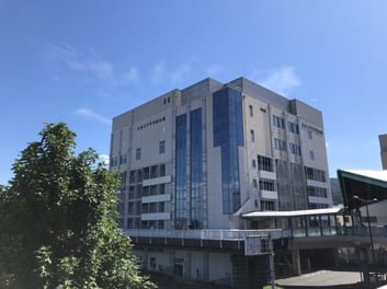 放送局にはぴったりの変わった設計のビルがありました。